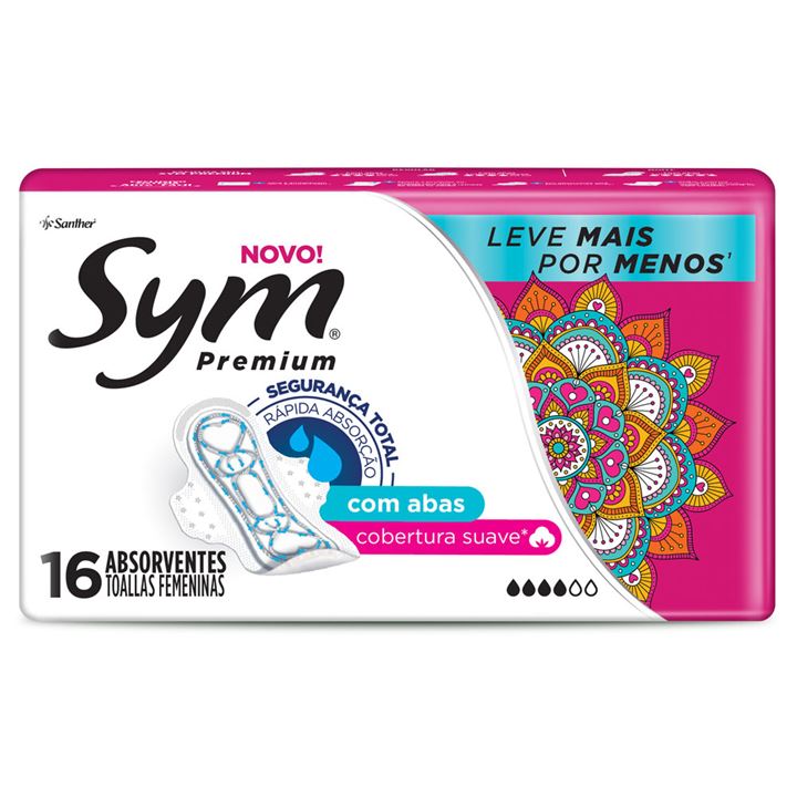 Absorvente Premium Cobertura Suave com Abas Sym Pacote 16Unidades