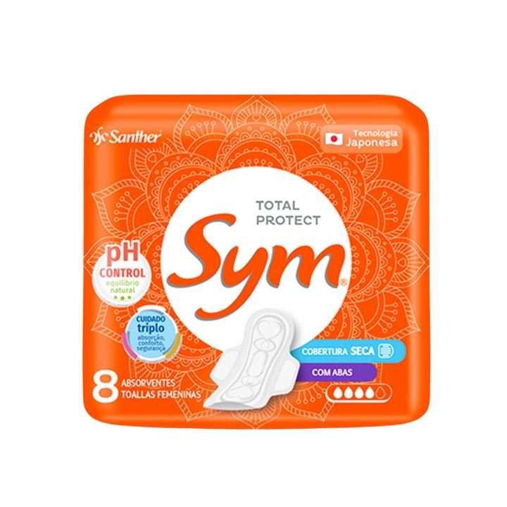 Absorvente Seca com Abas Sym Pacote 8 Unidades